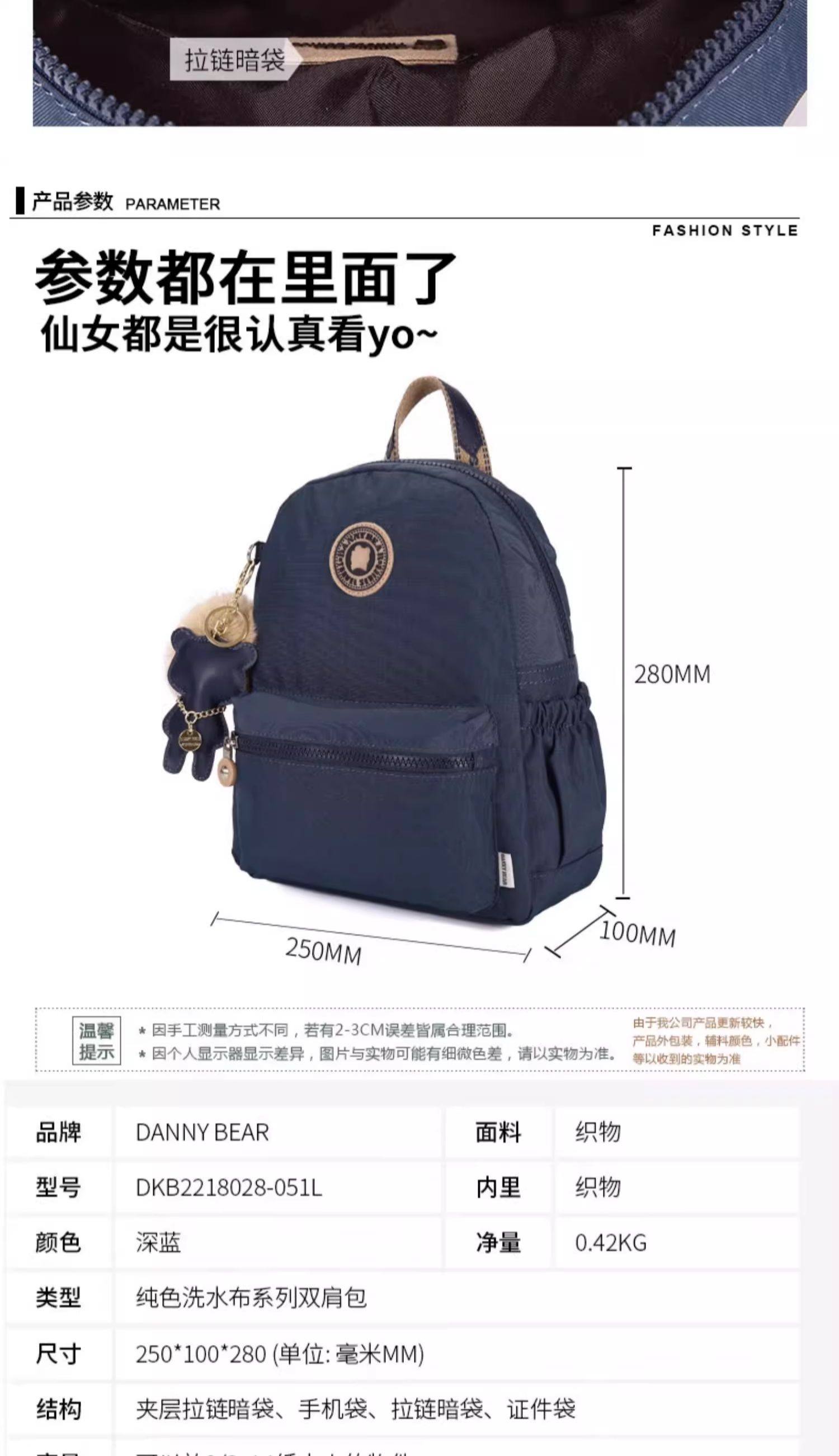轻盈洗水布双肩包DBTS49531-51
